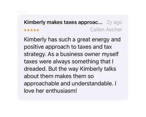 Where we connect your tax strategy to your actual goals - growing your business, paying yourself more, hiring, investing. You'll leave with clarity and a clear next step every time.